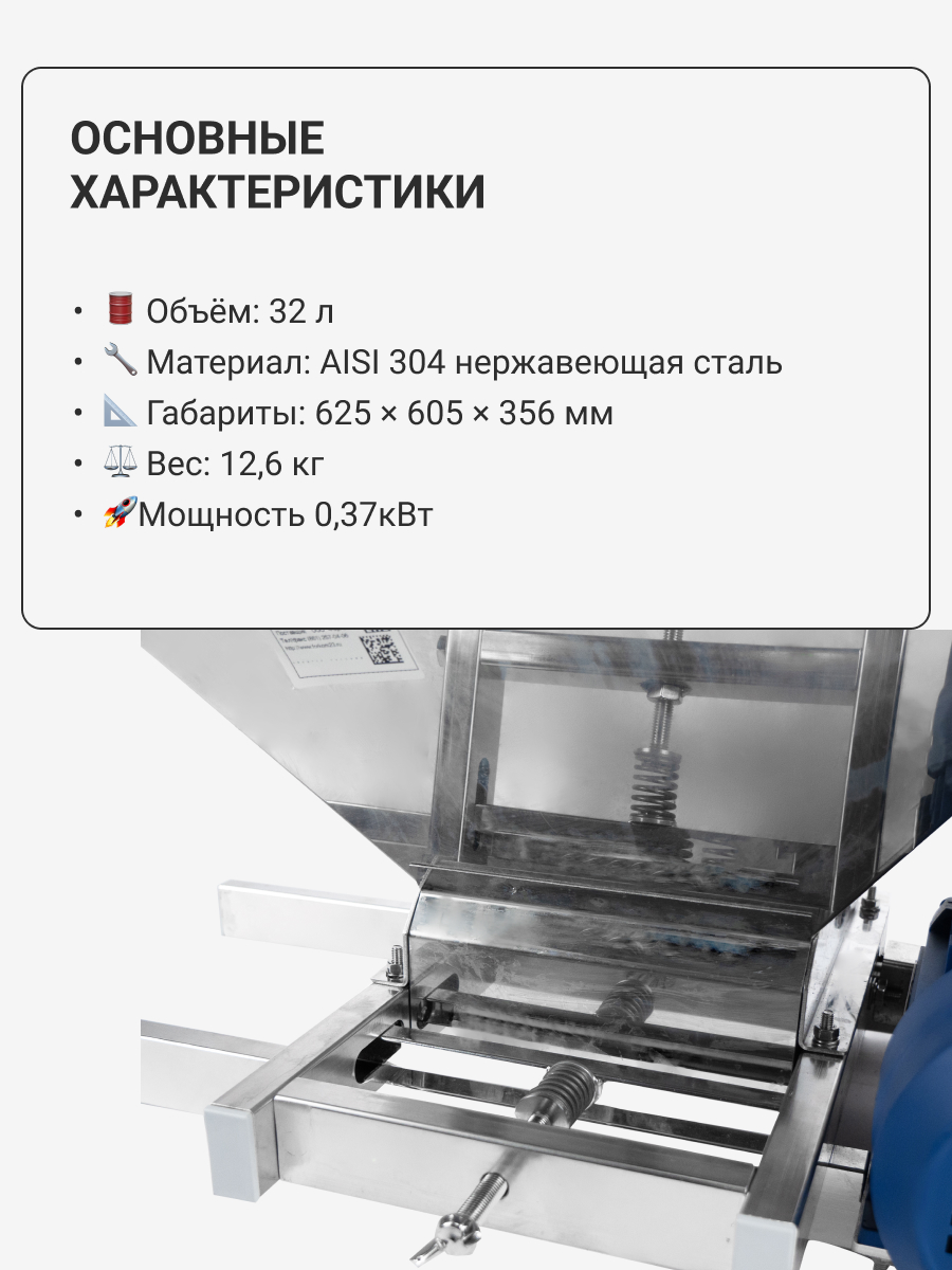 Мялка для винограда электрическая "Ягодка Люкс" 32 л из нержавеющей стали